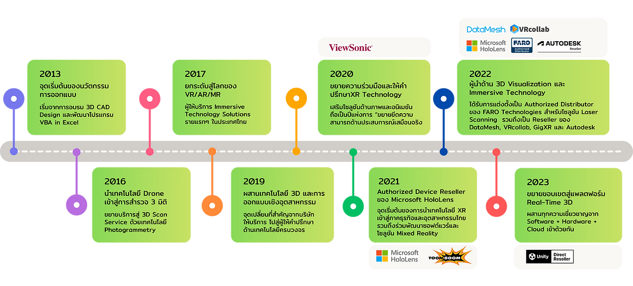 ความเชี่ยวชาญของเราครอบคลุมตั้งแต่การวางระบบเทคโนโลยี ไปจนถึงการออกแบบประสบการณ์ดิจิทัลที่ตอบโจทย์การใช้งานจริงของลูกค้า เราได้ร่วมมือกับพันธมิตรระดับโลกอย่าง Microsoft, Autodesk, FARO, Unity, DataMesh, VRcollab และ GigXR เพื่อมอบเทคโนโลยีที่เชื่อถือได้และได้รับการยอมรับในระดับสากล